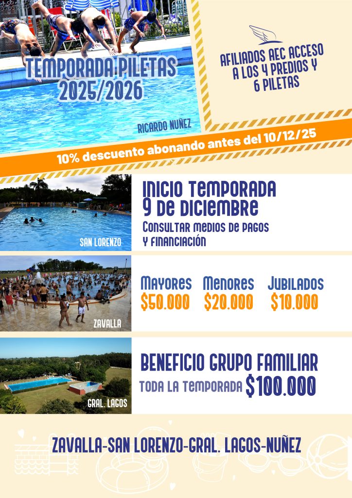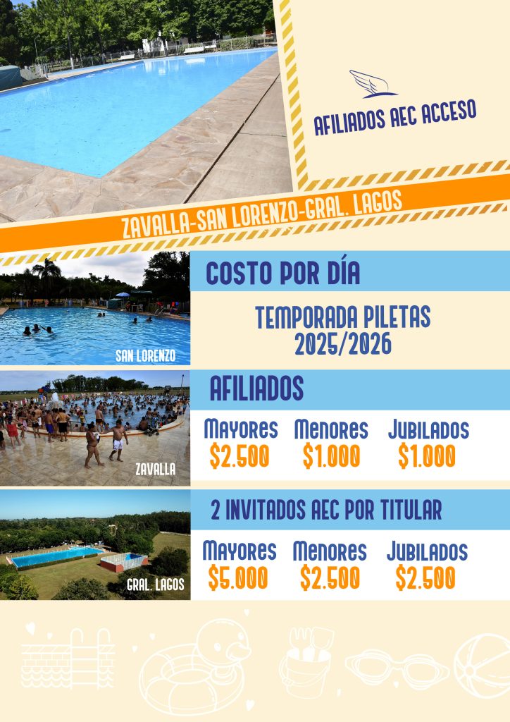 El 9 de diciembre próximo se inicia la temporada de piletas 2025/2026, las cuales podrán disfrutarse por temporada o por día, según este detalle: