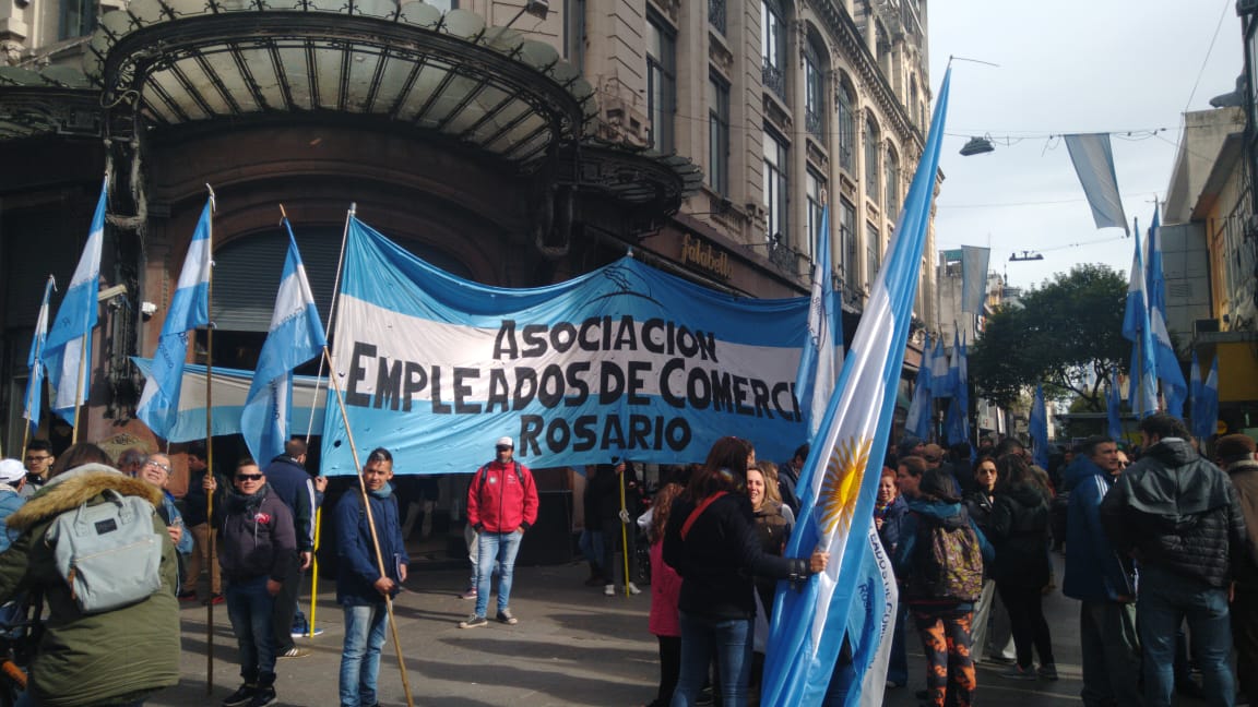 Lo hicimos, desde las 10 de la mañana, con un Banderazo celeste y blanco y compartiendo con muchísimos rosarinos y gente que vino a la ciudad desde otras localidades un chocolate bien caliente y tortas fritas hechas por compañeros de nuestro Comedor Mercantil.