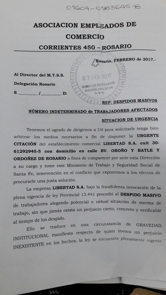 En el caso particular de este hipermercado Libertad, los despidos, además de totalmente injustificados, son contradictorios ya que a fines del año pasado incorporaron personal.
