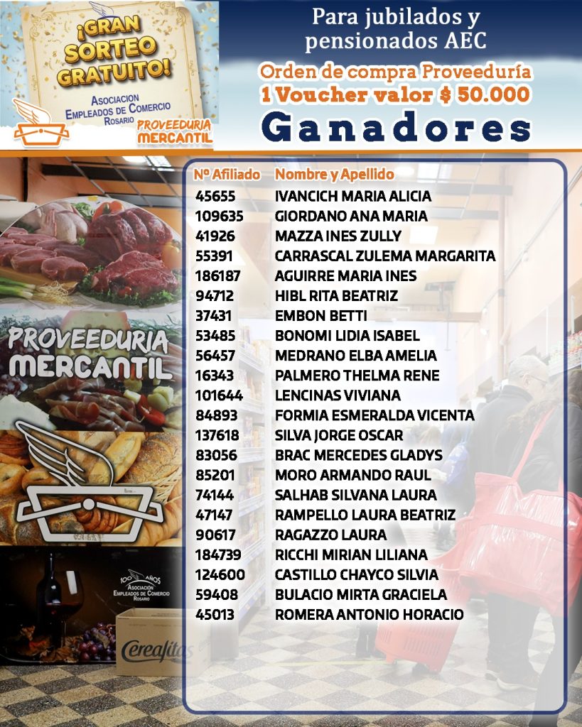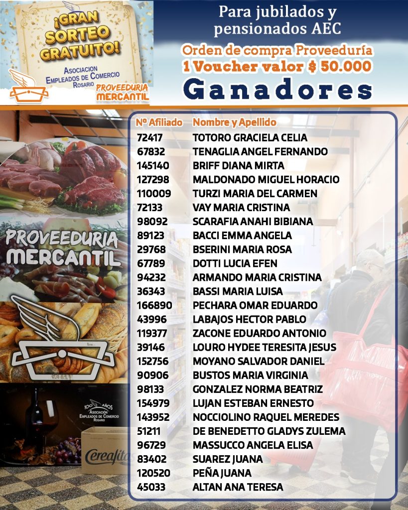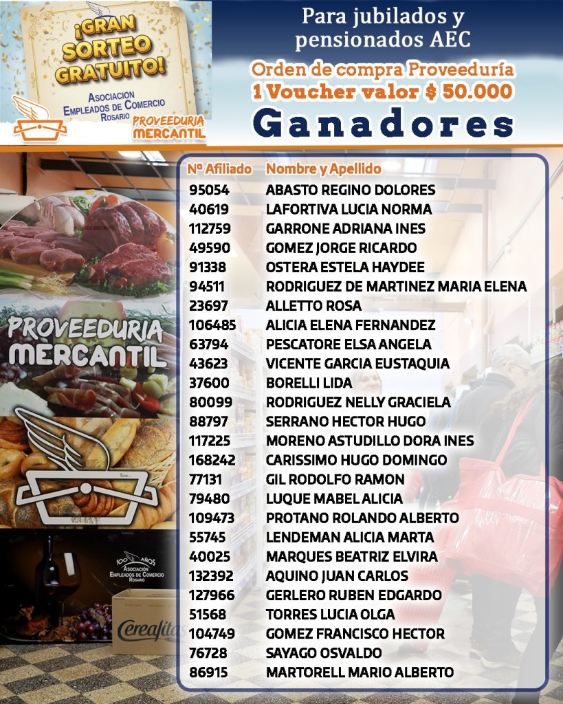 Quienes resultaron ganadores deberán retirar sus premios en el Fondo Compensador Mercantil, ubicado en el primer piso de avenida Corrientes 450, de lunes a viernes, de 9 a 17.