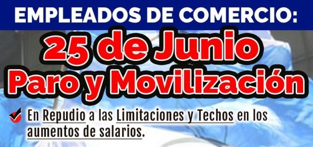 El lunes próximo, 25 de junio, los trabajadores mercantiles nos sumamos al paro dispuesto a nivel nacional y además vamos a movilizarnos.